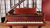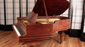 This Steinway Grand has a beautiful Figured Flame Mahogany art case with exquisite carvings and Victorian "ice cream cone" legs. It has rounded and carved arms, carved note rack and carved lyre. It will be fully restored using authentic Steinway parts and refinished to any color of your choice. Comes with a matching artist bench.