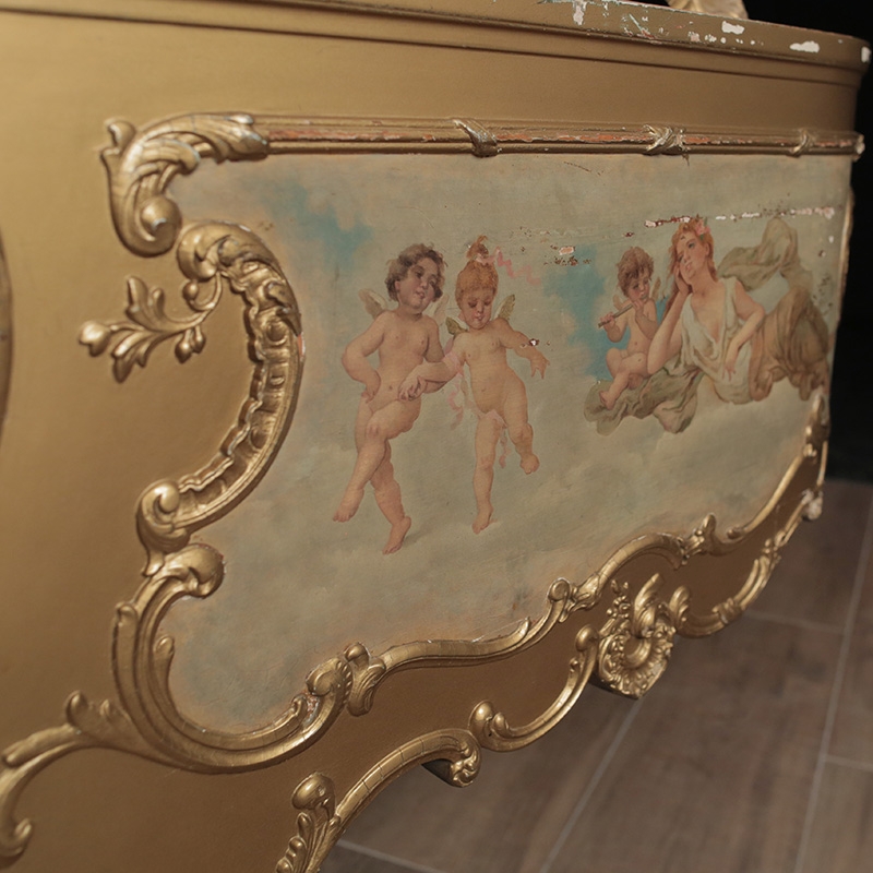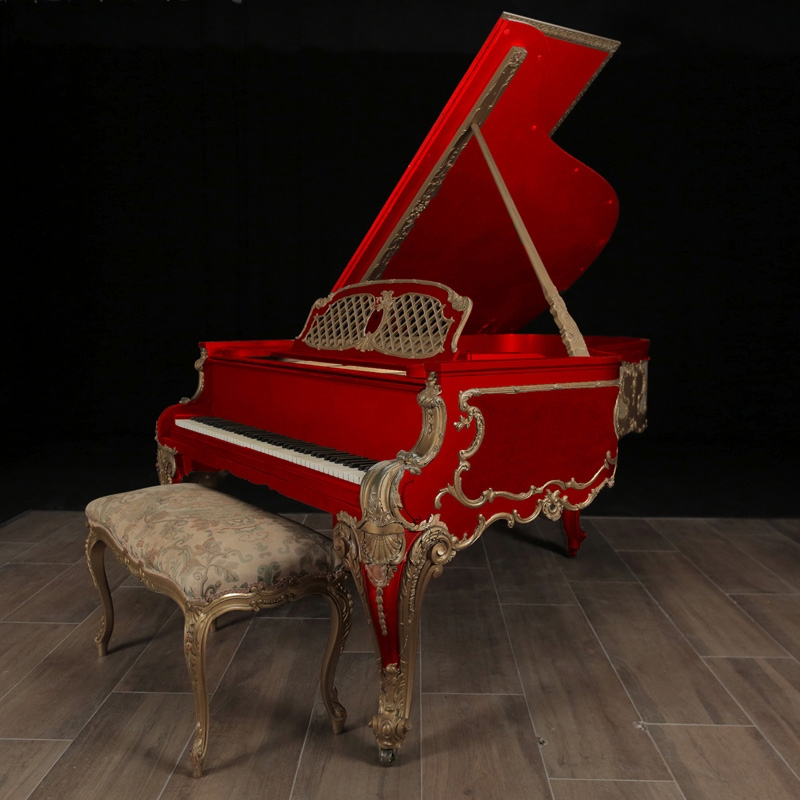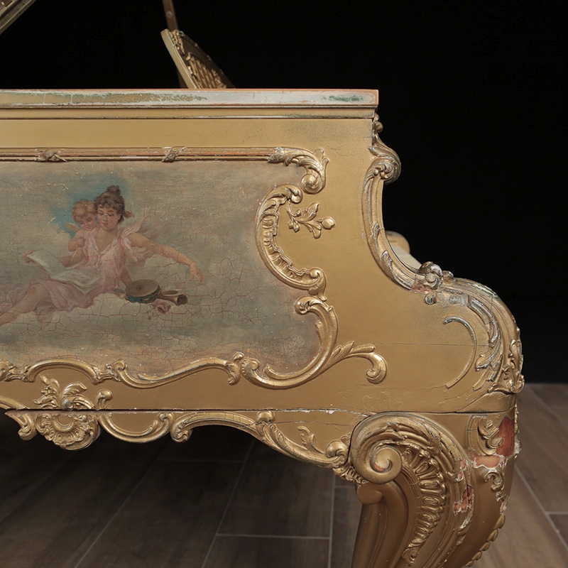 This is a one of a kind Steinway Model A with a Sketch 313 Louis XV Decorated Gold Case Design. It will be fully rebuilt using authentic Steinway parts and includes a matching bench. Please call for details. Included are photos that are renderings of custom finishes available.