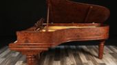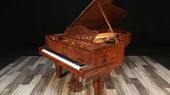 This remarkable 1901 Steinway Model C was built in Hamburg, Germany. It has just been fully restored with a new soundboard, a new action, and a brand new woodtone finish. The unique Victorian style cabinet boasts beautiful burled veneer and intricate hand-carved features. Our team is dedicated to ensuring that the tone of this piano meets your personal preferences. The piano includes a matching bench.