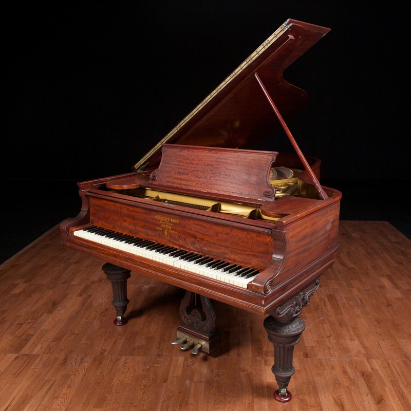 This incredibly rare Victorian styled Model B is encased in a beautiful "flame mahogany" veneer. It has exquisite carvings and "ice cream cone" legs. It will be fully restored with authentic Steinway parts and refinished in a stain of your choice. Piano also comes with a matching artist bench.