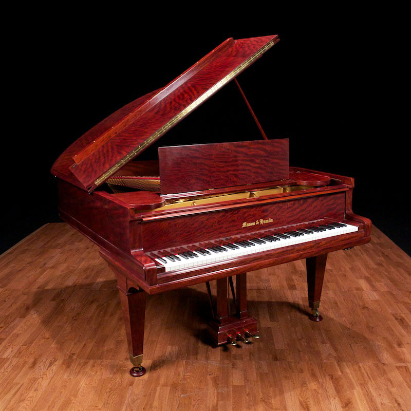 This is a traditional styled Mason Hamlin grand piano with a rare beautiful african mahogany case. This piano was completely restored in 2009 and is in mint condition. Includes a matching artist bench.