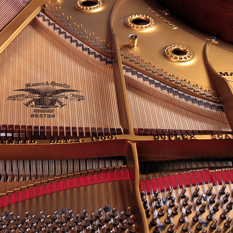 Well known for its deep tone and rich sound. This Mason & Hamlin grand has been completely restored. It has been refinished in a mahogany stain and comes with a matching artist bench.