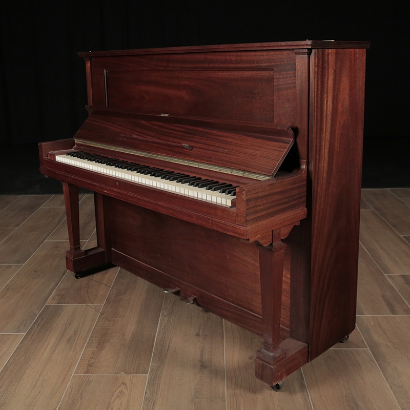 This Model K upright has a lovely mahogany veneer. It will be rebuilt using authentic Steinway parts and refinished in a stain of your choice. Includes a matching bench.