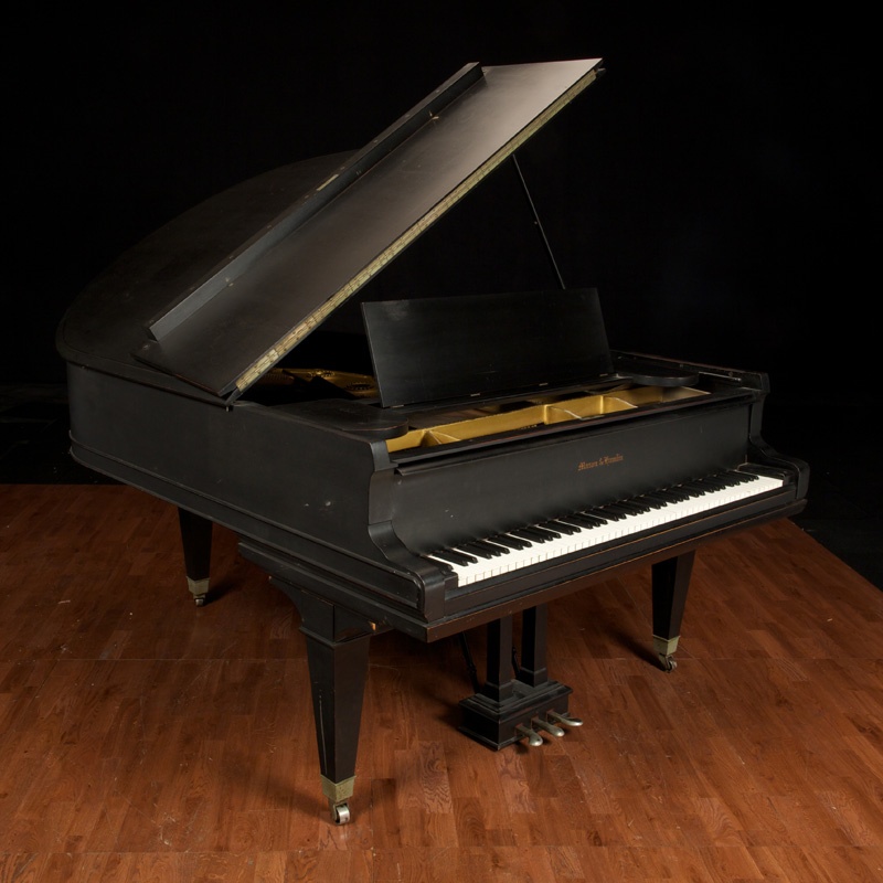 Well known for its deep tone and rich sound. This traditional style Mason Hamlin grand will be refinished in a satin ebony lacquer and fully restored. Includes a matching artist bench.