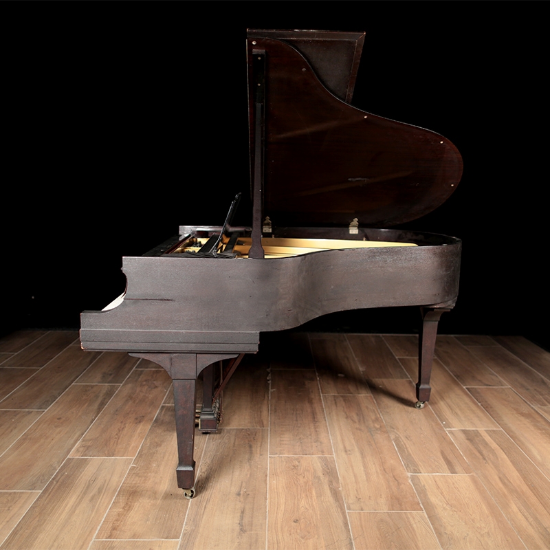 This Steinway Model M has the traditional style case and will be refinished in a classic satin ebony. The soundboard is in excellent condition. It will be rebuilt using historically accurate parts and includes a matching wood top bench.