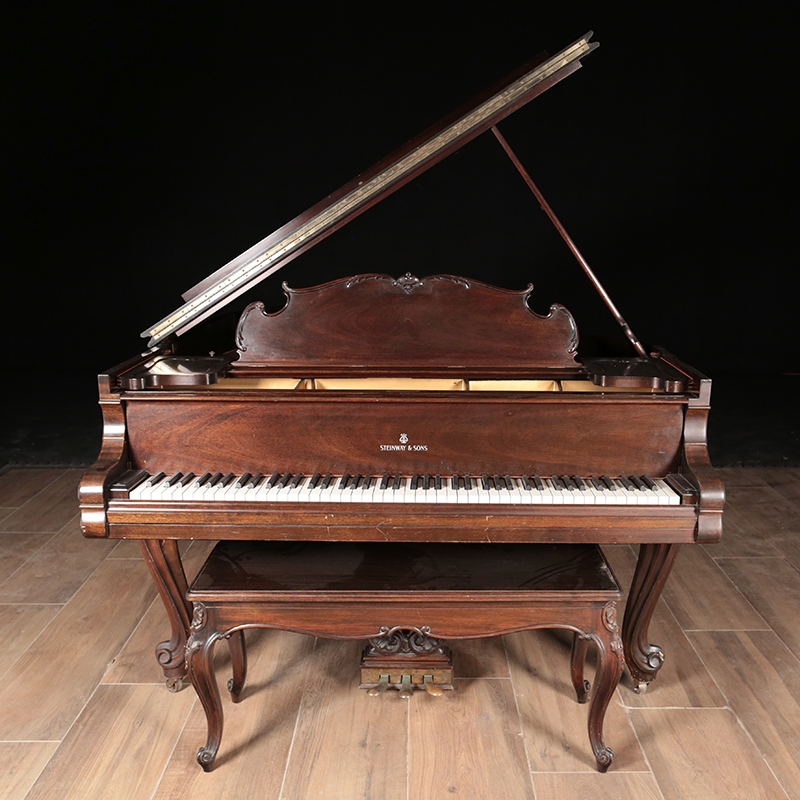 This Louis XV style Model M has been very well maintained over the years. The soundboard is in excellent condition. We will install new Steinway hammers, shanks, and flanges. It will be regulated and voice to your specifications. It can be refinished to a color of your choice at an additional cost. Includes the original matching bench shown.