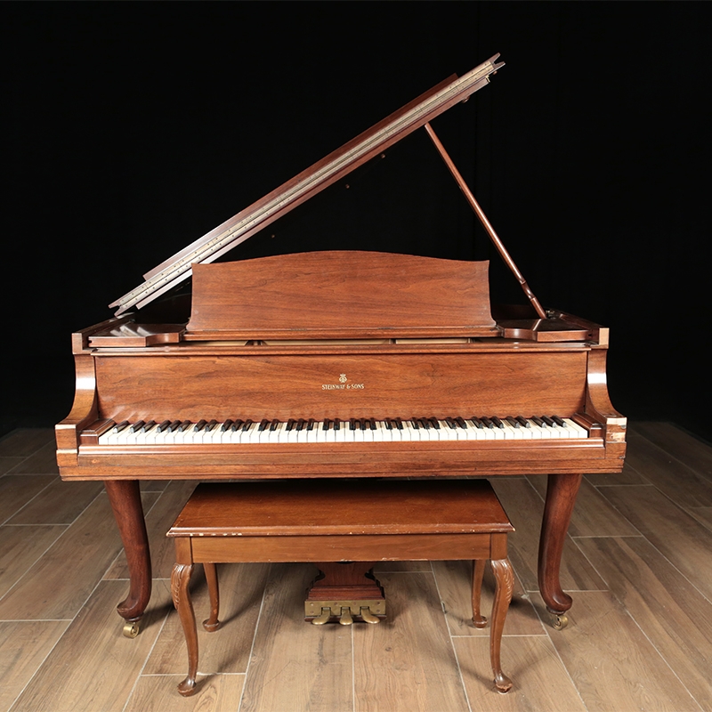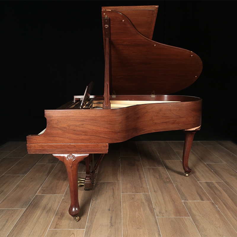 This limited production Queen Anne Model M in Walnut. This piano has been previously rebuilt with new strings, pins and dampers. The soundboard was refinished and the harp was rebronzed. Includes the original matching bench shown.