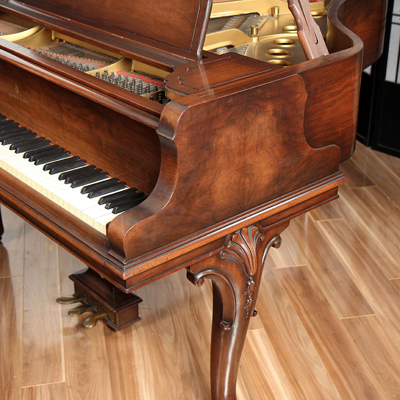 The Model M is considered by some to be the perfect size piano for any room. This medium sized grand carries the reputation of giving off the deep, rich sound of a larger grand without taking up much room. This beautiful Queen Anne style Model M comes with a lovely set of ivory keys and a matching artist bench.