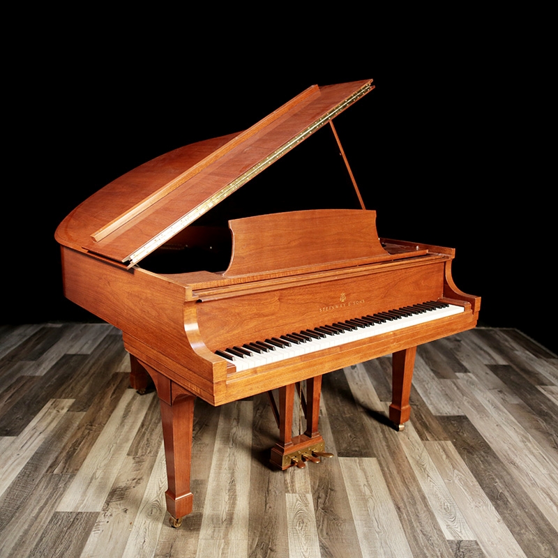 This Steinway Model M is a walnut & traditional style baby grand. Contact us on how we can adjust the touch and tone to meet your needs. Includes the original matching wood top bench shown.