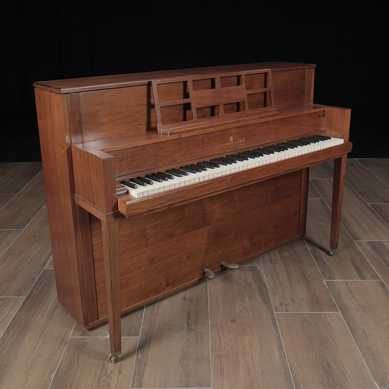 This is a unique Steinway console in very good mechanical condition. The walnut case can be refinished in a stain of your choice or refinished in a satin ebony. Comes with a matching bench shown.