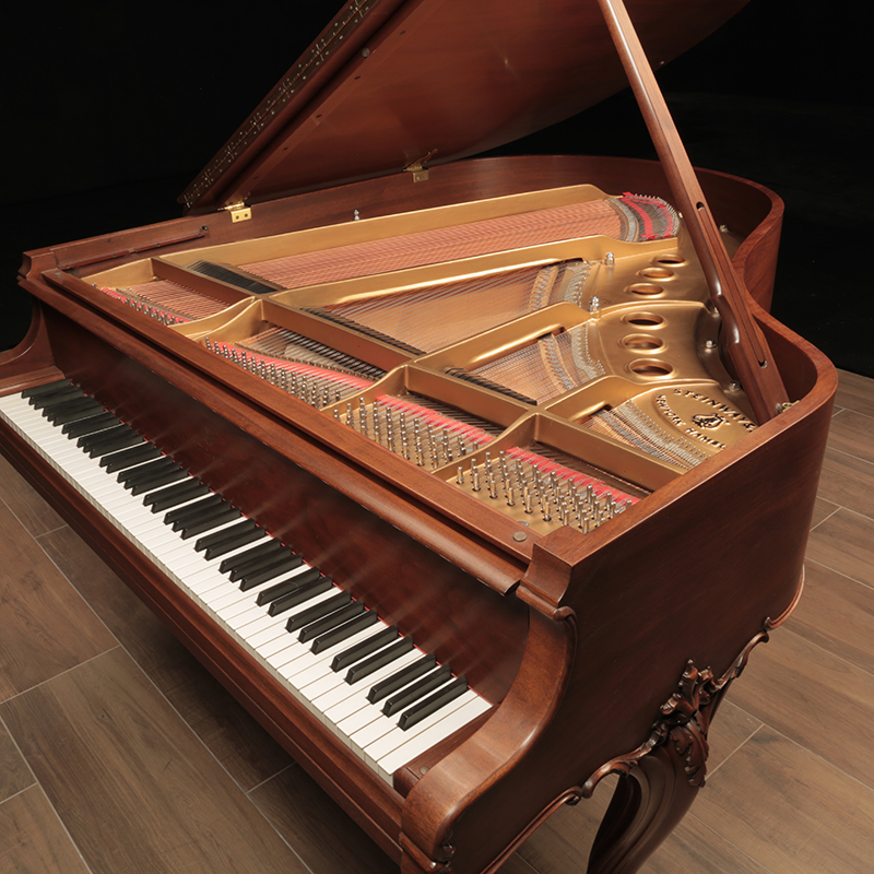 This is a beautiful Louis XV style piano is encased in a walnut cabinet with exquisite carvings. It was signed by John Steinway. All the mechanical parts are original and in very good condition. Comes with a matching artist bench.
