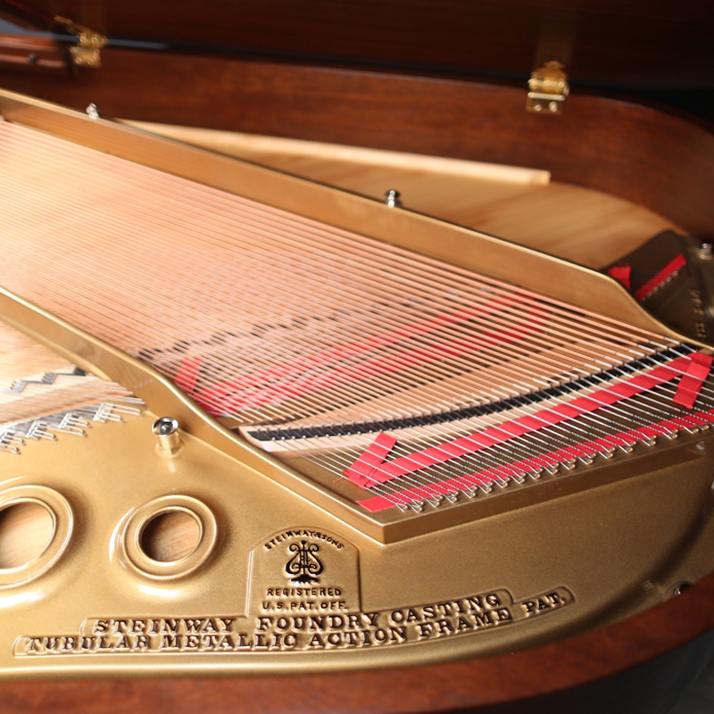 We recommend that this soundboard be replaced with a hand-crafted spruce soundboard.