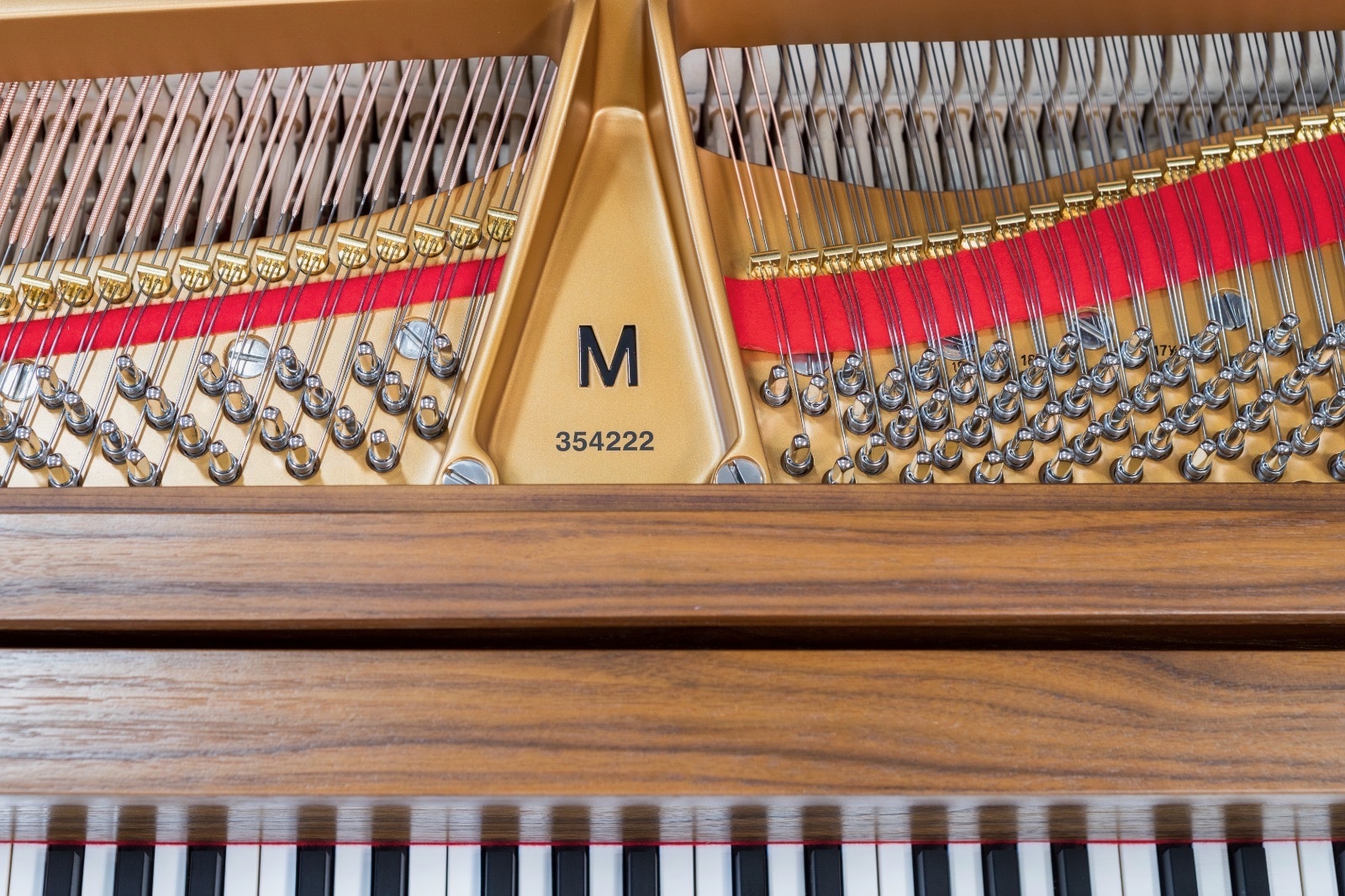 We recommend that this soundboard be replaced with a hand-crafted spruce soundboard.